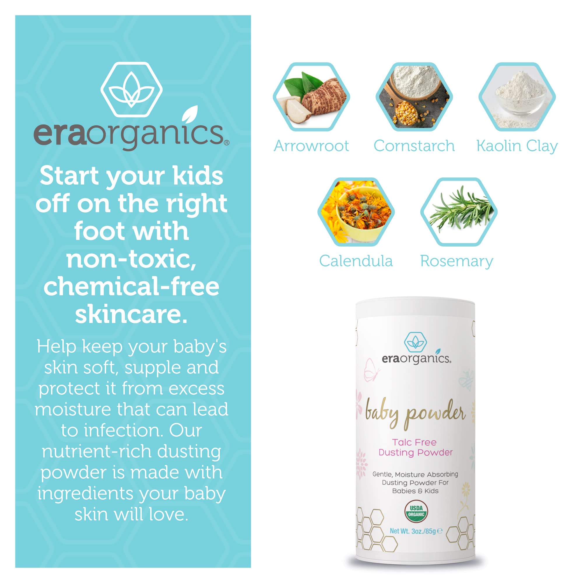 Amazon Com Era Organics Talc Free Baby Powder Usda Organic Dusting Powder For Excess Moisture Chafing That S Actually Good For Your Skin Non Toxic Non Gmo Cruelty Free Baby Skin Care